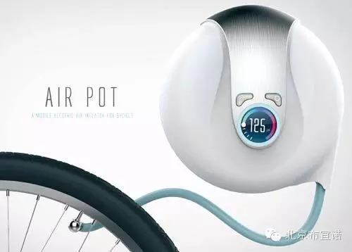 14. 《便携式自行车充气泵》,它内置了一个微型的电动压缩机,用可伸缩的充气管连接车胎后,能够替代打气筒,来实现自动给轮胎灌气的目的。