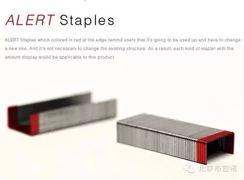 15. 《警报订书针》,一个简单的调整,将订书针末端几根颜色变为红色,看到它们出现时,就知道应该补充针了。