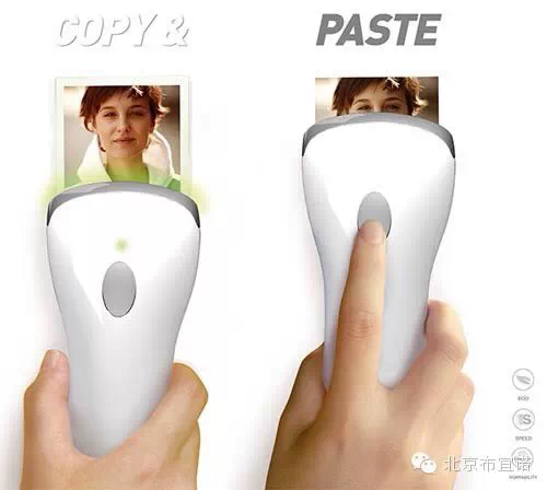 18. 《复制粘贴打印机》,是一款便携式扫描打印设备,只需按一下下方按钮,即可扫描图像信息,按一下上方按钮,就可在纸张上打印出来;还可直接将扫描信息“打印”到电脑上。