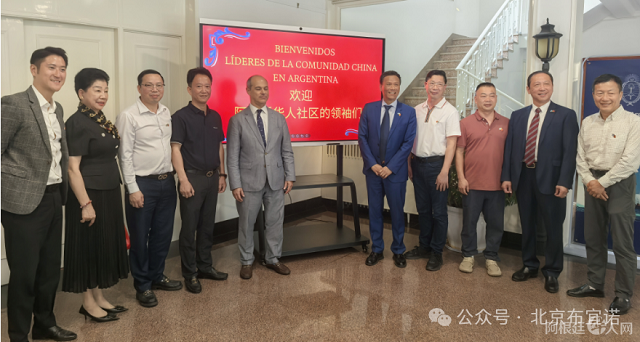阿根廷中国和平统一促进会会长何文强在发言中感谢大使的接见,愿和大使一道:为中阿两国友好往来及经贸合作做贡献。